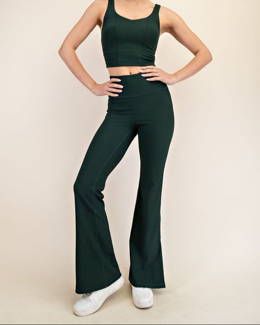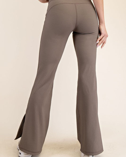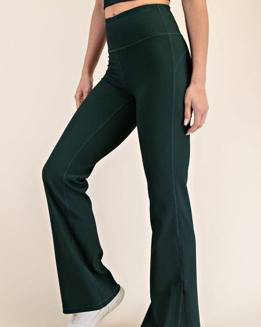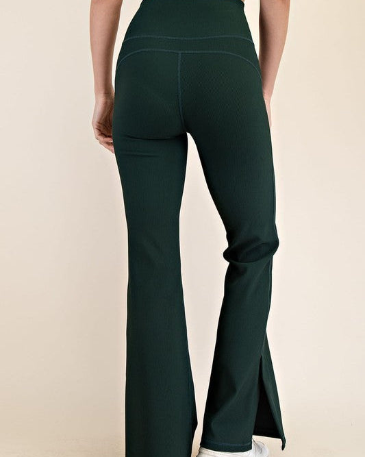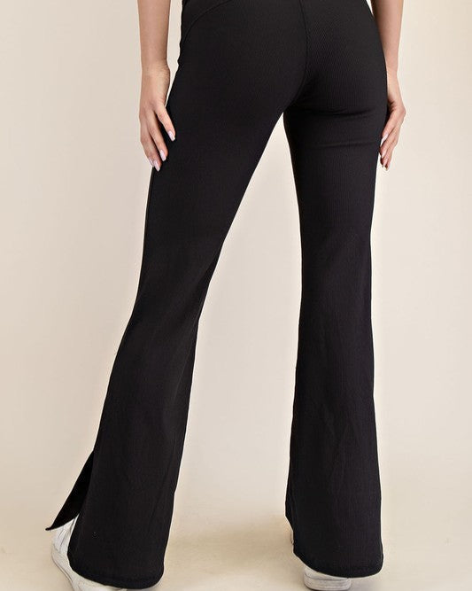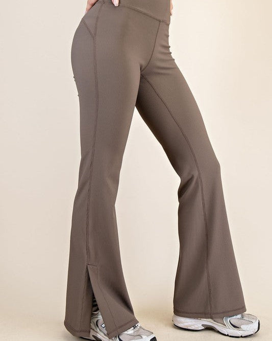 Introducing Walk It Out Leggings - the perfect combination of style and function! These nylon rib flare leg leggings offer a slim fit with a flared bottom for a flattering silhouette. The full length design features a side bottom slit, and the secret mini pocket in the waistband adds convenience. Upgrade your workout wardrobe today!