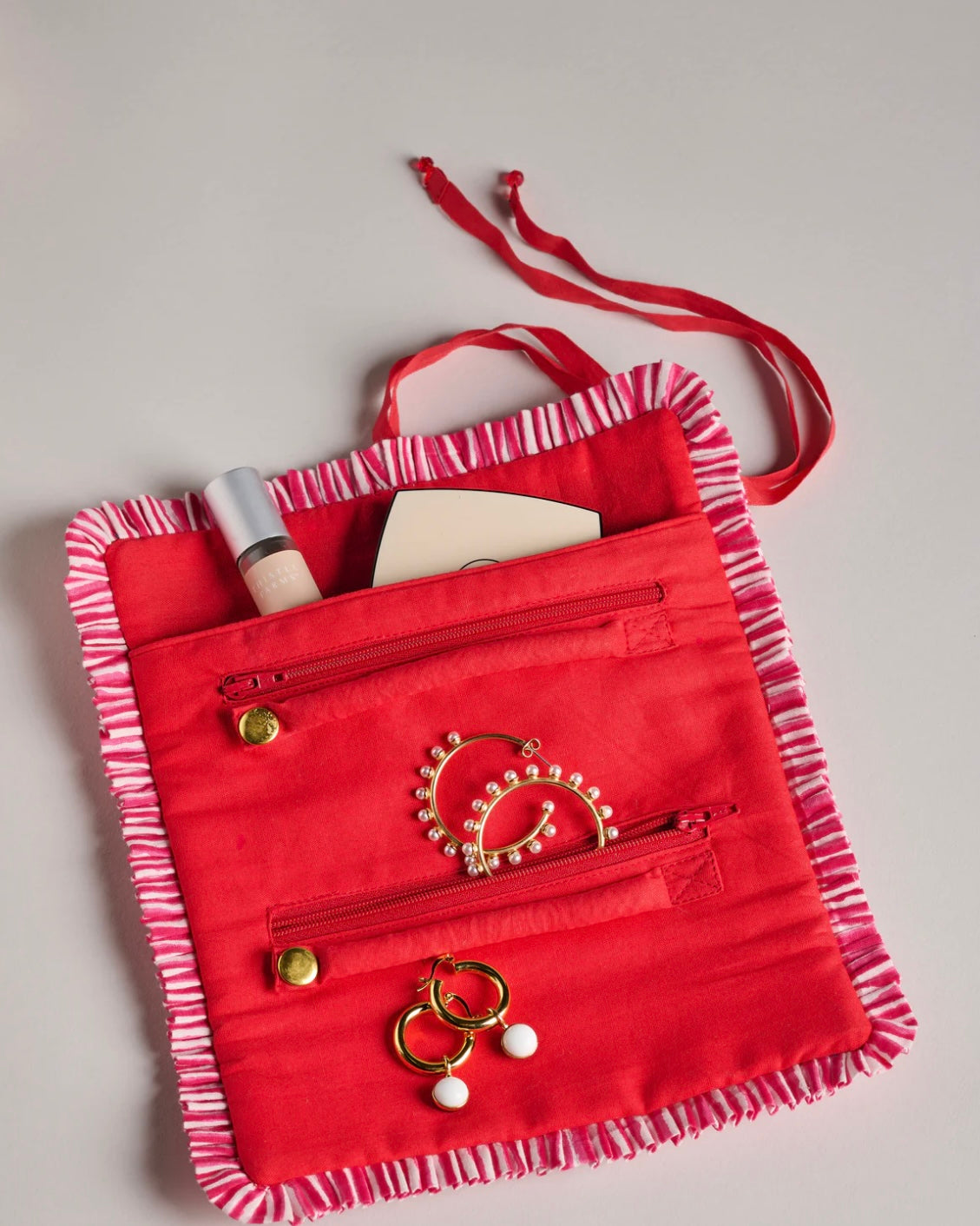 Keep your precious pieces safe and organized in style with this charming Velvet Jewelry Roll. Crafted from luxuriously soft velvet, it features multiple compartments designed to protect rings, necklaces, bracelets, and earrings from tangling and damage. The compact, roll-up design makes it perfect for travel or everyday storage, while its adorable aesthetic adds a touch of elegance to any vanity or dresser. Whether you're gifting it to someone special or treating yourself, this delightful organizer combines practicality with undeniable charm—the perfect way to display and preserve your favorite accessories.