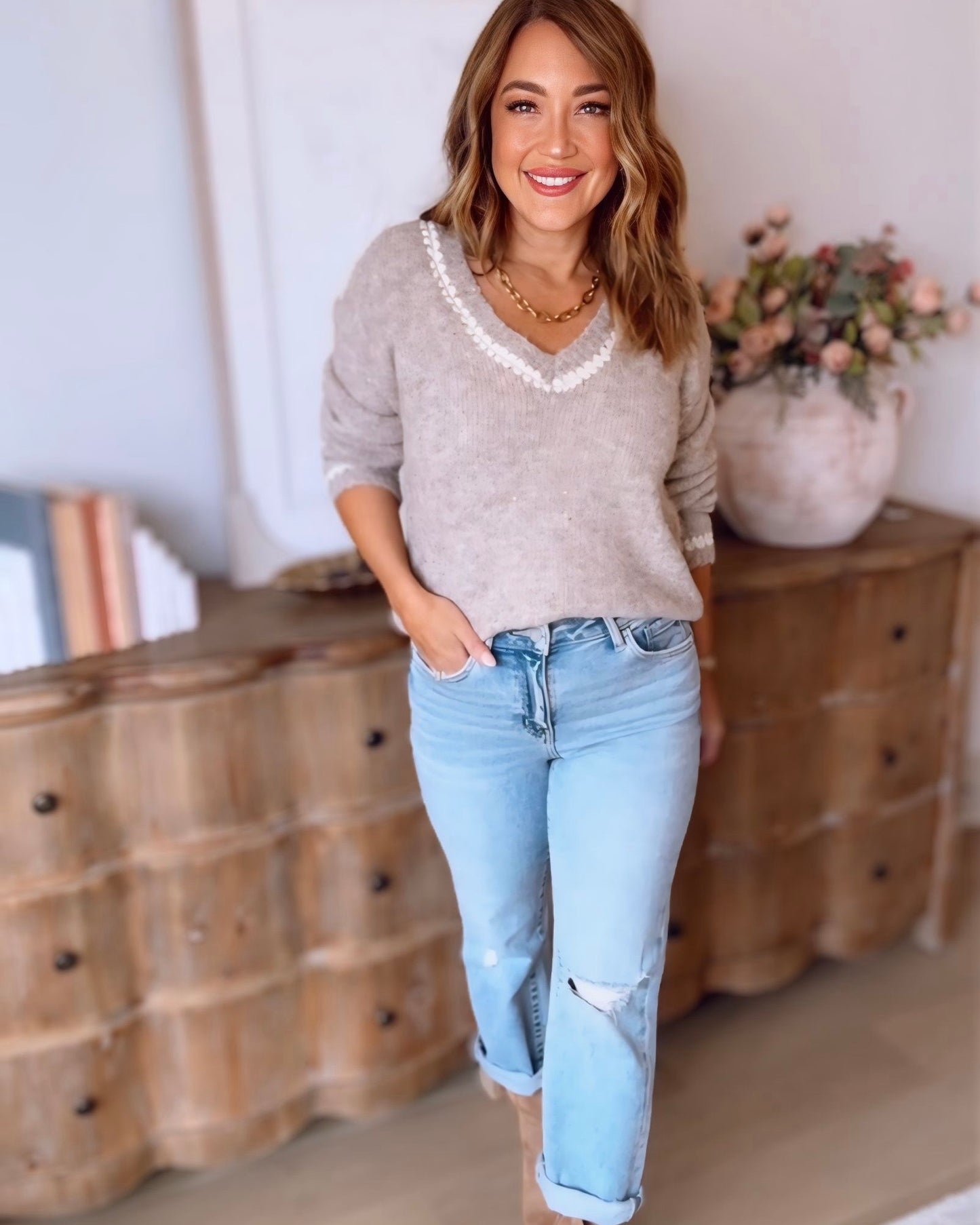Saige Sequin Stitch Sweater