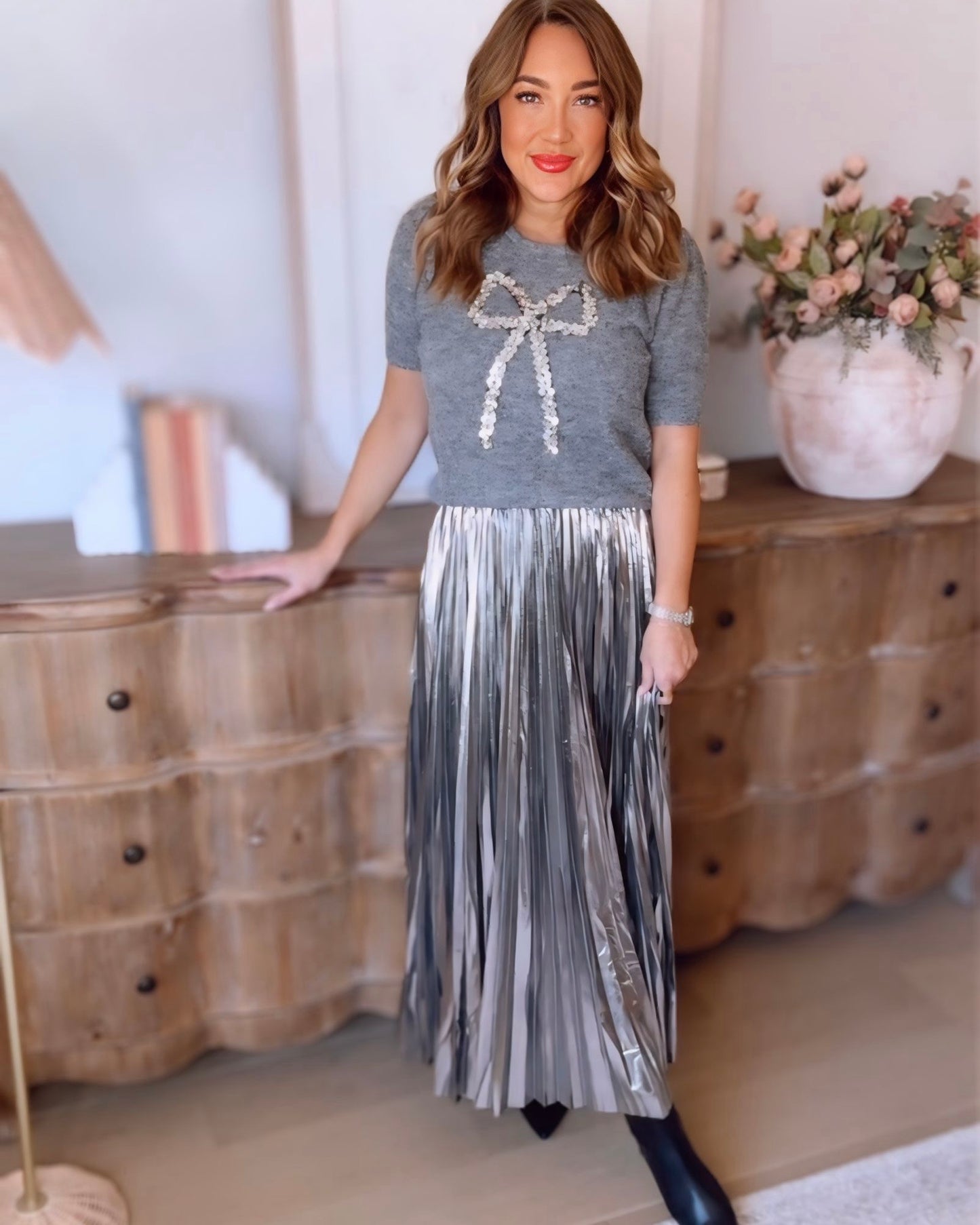Elevate your style with the Harriet Sequin Bow Sweater Top. Featuring sparkling sequins and a charming bow detail, this sweater adds a touch of glamour to any outfit. Soft and comfortable, it’s perfect for standing out at parties or turning everyday looks into something special. Make every moment shine with effortless elegance.
