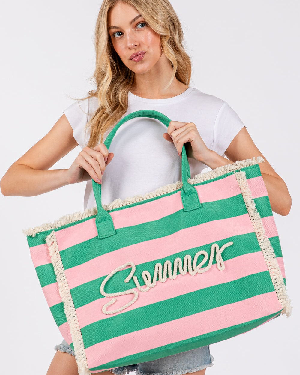 Carry your essentials in style with this charming Summer Fringe Tote. Available in six vibrant colors, each bag features playful fringe detailing that adds a fun, carefree vibe to any outfit. The spacious interior keeps your everyday items organized, while the sturdy handles make it perfect for beach days, shopping trips, or casual outings. Whether you're drawn to bold hues or soft pastels, there's a shade that matches your personality. Make this adorable tote your go-to companion for effortless summer style.